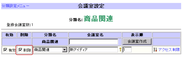 | 分類・会議室の削除 |